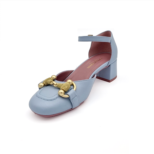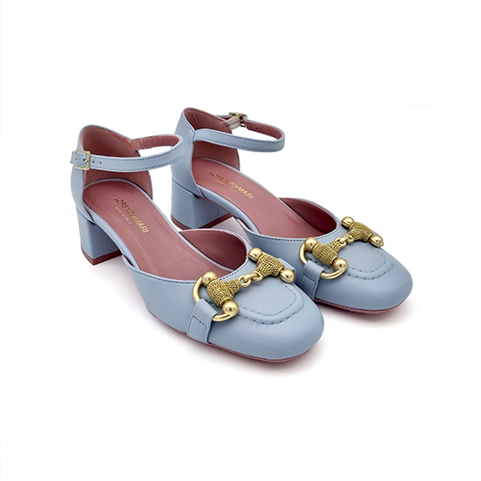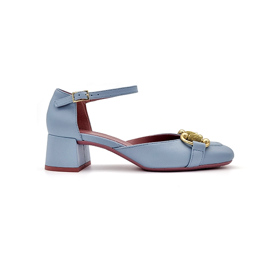Mary Jane donna in pelle con accessorio in punta, cinturino alla caviglia e tacco alto 4,cm.