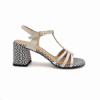 Sandalo in ecopelle con cinturino alla caviglia regolabile e chiusura con fibbia. Il tacco largo garantisce stabilità e comfort durante tutta la giornata, mentre la fantasia geometrica multicolore su tacco e lato della suola aggiunge un tocco unico e artistico al tuo look.