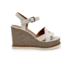 Sandalo in ecopelle con cinturino alla caviglia regolabile e chiusura con fibbia. Il tacco largo garantisce stabilità e comfort durante tutta la giornata, mentre la fantasia geometrica multicolore su tacco e lato della suola aggiunge un tocco unico e artistico al tuo look.
