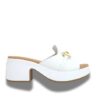 Sandali donna platform in suede Janet & Janet. Tomaia con intreccio laminato gold, morbido sottopiede con cuscinetto su zeppa platform 5 cm.