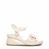 Sandalo zeppa in pelle con chiusura regolabile. Suola in gomma.