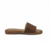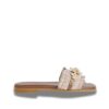 Scivolo donna in pelle con accessorio gioiello e tessuto.