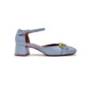 La slingback Giglio è realizzata in jeans, combinando un design essenziale e raffinato con dettagli unici che la rendono speciale. La punta affusolata dona slancio alla figura, mentre le fibbie personalizzate con il logo Lorenzo-Mari aggiungono un tocco distintivo e sofisticato