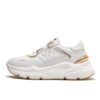 Sneakers in pelle, chiusura con laccio, occhielli con strass, toppa posteriore in contrasto di colore, sottopiede imbottito in pelle e fondo gomma con para alta 3 cm.
