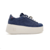 Sneakers in pelle intrecciata e applicazioni gioiello, fondo in EVA di 5 cm, internamente è foderata in pelle, soletta interna estraibile.