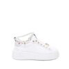 Sneakers pelle con applicazione gioiello sui lacci. Patch logo sulla linguetta. Suola over in gomma. Soletta in vera pelle.