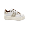 Sneakers donna in pelle, chiusura lacci, banda laterale, fussbett estraibile, fondo gomma 5 cm.